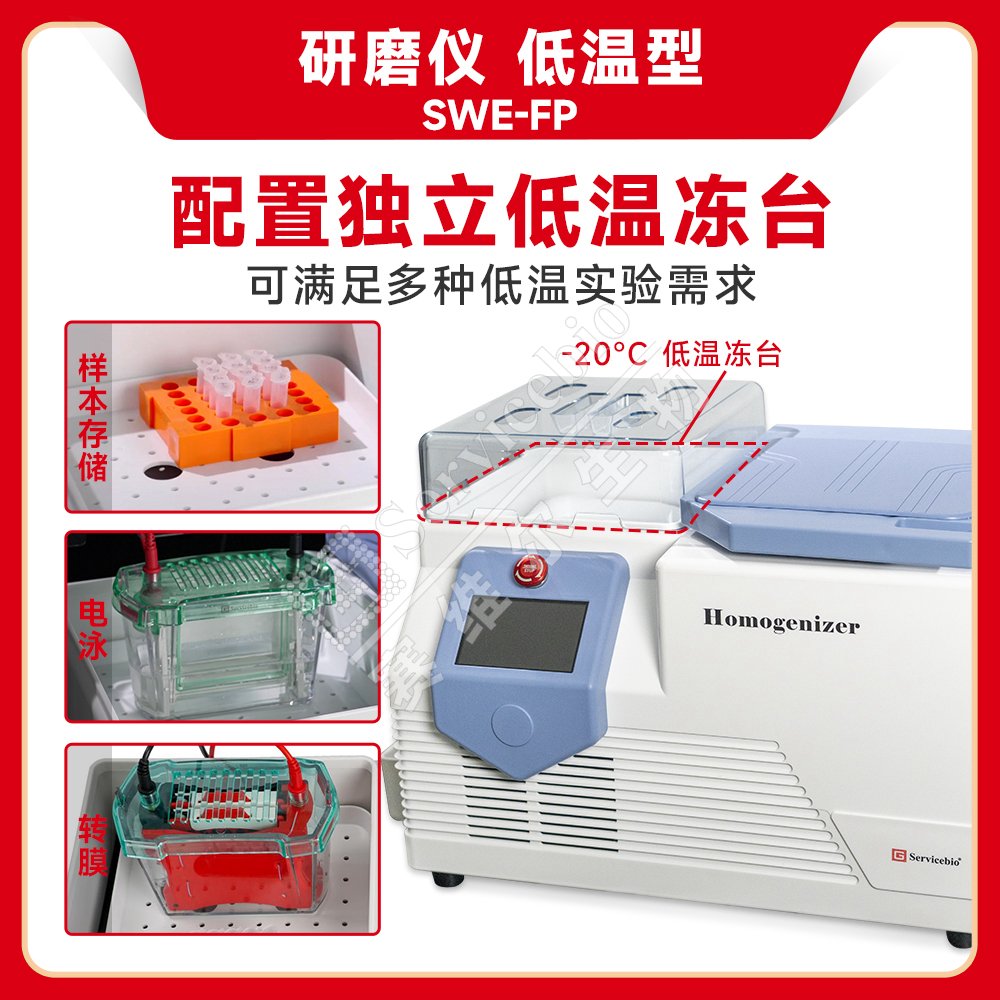SWE-FP是一款全新升级的低温型研磨仪,仓内温度可达-50℃,并且拥有低温冻台。通过垂直震荡系统高速往复运动,使研磨管内冷冻的样品与研磨珠相互碰撞,其产生的研磨剪切力和撞击力使组织完全破碎,*多可在一分钟内同时处理192个样本,是满足多样品一次性快速处理的专用设备。