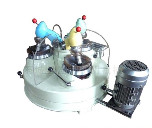 三头研磨机结构主要由三套磨头、离盒器、研钵支座、及定位器等总装组成。