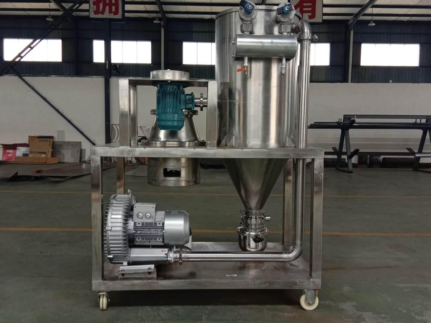 全套设备标配为冲击磨主机、立式高精涡轮分级机、旋风收集器、电子脉冲袋式除尘收集器及配套的电机、电控组件。