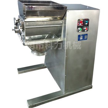通过机械传动使滚筒往复摆动,将物料从筛网中挤出制成颗粒或粉碎制粒。
