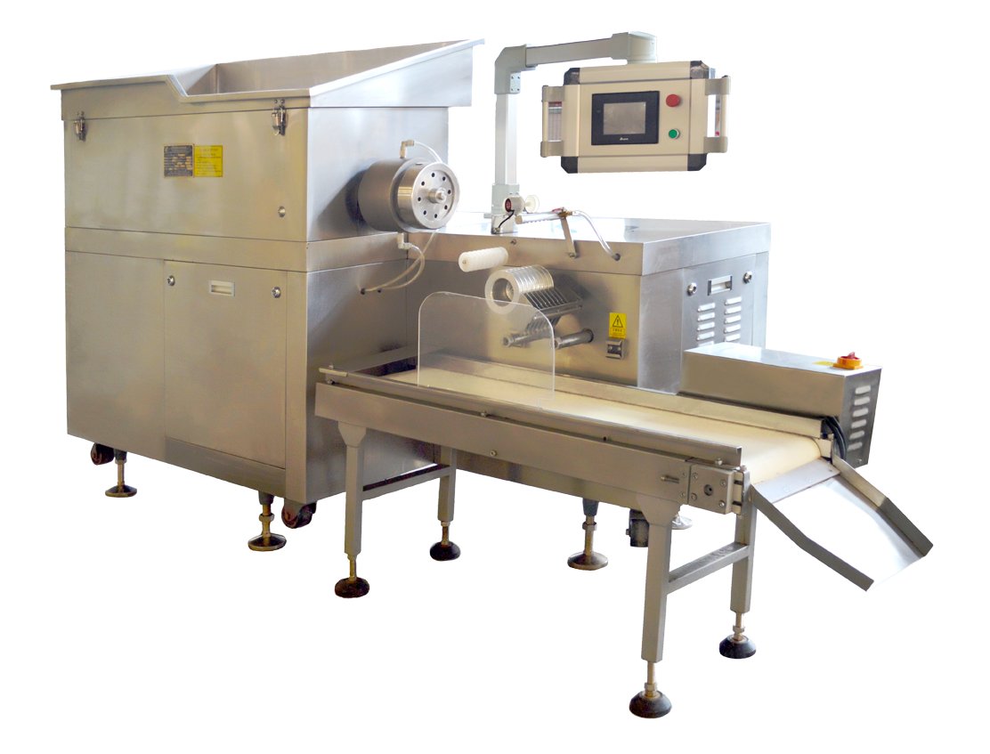YUJ—18BZ高效全自动中药制丸机工作原理: YUJ—18BZ高效全自动中药制丸机将药粉加配料(如:水、蜜、提取液或浸膏)混合搅拌均匀后通过制丸机将药物挤压制成条状,YUJ—18BZ高效全自动中药制丸机通过测速电机、导轮、顺条器后,由成型刀轮切断高速制成药丸。YUJ—18BZ高效全自动中药制丸机的工艺路线为: YUJ—18BZ高效全自动中药制丸机药物粉碎—配料搅拌—混合—炼—制丸—干燥。YUJ—18BZ高效全自动中药制丸机还可根据需要更换不同规格的刀轮,即可连续搓制出所需直径的药丸。YUJ—18BZ高效全自动中药制丸机结构特点: YUJ—18BZ高效全自动中药制丸机触摸屏控制采用PLC可编程控制器、编码器等高新技术,自动化程度高,拖动部分采用进口交流变频器控制,操作简单,YUJ—18BZ高效全自动中药制丸机与药物接触的部位及外观表面均采用不锈钢材料,YUJ—18BZ高效全自动中药制丸机工作面无死角,易于清理,符合GMP要求。