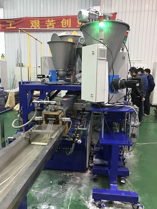 >KTE36B水冷拉条双螺杆挤出造粒机+失重称+侧强喂料机