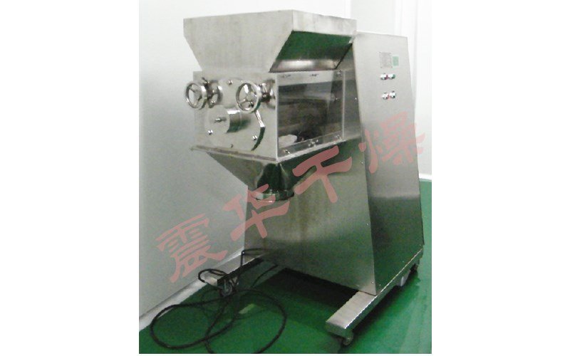 摇摆颗粒机运行时,加料量和筛网位置的松紧直接影响制得颗粒的质量。加料斗中加料量多而筛网夹得比较松时,由于滚筒旋转时能增加软材的黏性,制得的颗粒粒子粗且紧密;反之,则制得的颗粒粒子细且松软。增加黏合剂浓度或用量,或增加软材通过筛网的次数,均能使制得的颗粒坚硬。制得的颗粒一般粒径分亦均匀,有利于湿粒均匀干燥。它的主要特点为旋转滚筒的转速可以调节,筛网装拆容易,还可适当调节其松紧。机械传动系统全部密封在机体内,并附有调节系统,提高了机件的寿命。但由于成粒过程是由滚筒直按压迫筛网而成粒的,物料对筛网的挤压力和摩擦力均较大。使用金属筛网时易产生金属屑染处分,而尼龙筛网由于容易破损需经常更换,在使用时应加以注意。