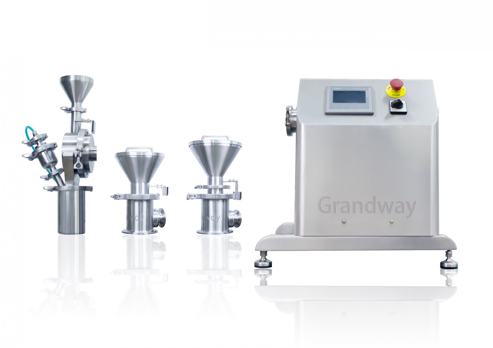 KT50多功能粉碎整粒机 仅需几分钟可实现在锥磨/锤磨/筛分方案中的切换,机头快装设计安装清洗方便,一体化紧凑设计,深受广大客户的欢迎。KTG50 实验型粉碎整粒机机头在保留了K50实验型粉碎整粒机优点的前提下改变为齿轮箱传动方式,实现了粉碎机头快捷连接,满足中试生产和无菌生产要求。