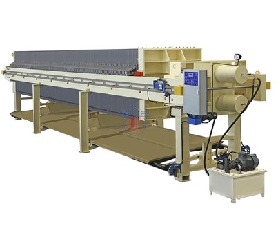 自动厢式压滤机机架部分是机器的主体,用以支撑过滤机构,衔接其它部件。它主要由止推板、压紧板、油缸体和主梁等部件组成。自动厢式压滤机作业时,油缸体内的活塞推动压紧板,将坐落压紧板与止推板之间的滤板、隔阂板、滤布压紧,以保证带有压力的料浆在滤室内进行加压过滤。过滤部分是由按必定次第排列在主梁上的滤板、夹在滤板之间的滤布、隔阂滤板组成,滤板、滤布与隔阂滤板的相间排列,构成了若干个独立的过滤单元──滤室过滤开始时,料浆在进料泵的推动下,经止推板上的进料口进入各滤室内,并借进料泵产生的压力进行过滤。由于滤布的效果,使固体留在滤室内构成滤饼。