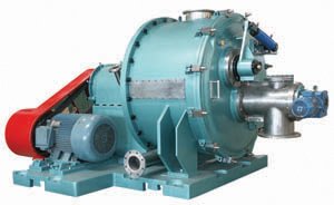 虹吸式卧式离心机是在普通卧式刮刀卸料离心机的基础上,利用虹吸原理增加过滤推动力,透过过滤介质的滤液全部进入滤液室,滤液通过虹吸管 (撇液管)排出转鼓,调节虹吸管吸入口位置可改变虹吸室内液面深度,以改变过滤推动力,调节过滤速度、处理能力、滤饼的含湿量以及洗涤效率。设置反冲装置,可在需要时向虹吸室内加入反冲液,洗涤液经过滤介质流向转鼓内,使过滤介质恢复过滤性能,得于再生。虹吸式卧式刮刀卸料离心机适合于生产量大、要求滤饼含湿量低并充分洗涤的场合,广泛应用于淀粉、碳酸氢钠磷酸钙等物料的分离。