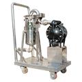 不锈钢精效圆筒式滤网、铁氟龙或其它材质过滤袋,密封装置,隔膜泵、以及小推车