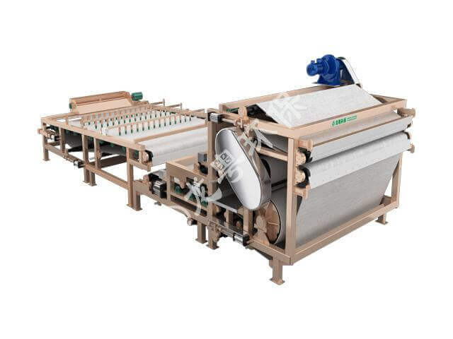 分体式带式浓缩压滤机分为三个步骤进行过滤及脱水的功能。