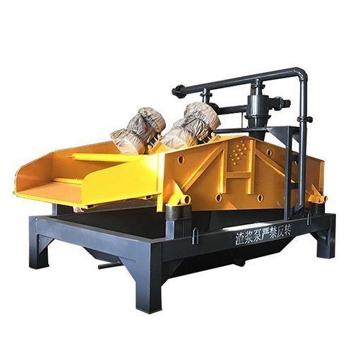 将砂水混合物输送至旋流器,离心分级浓缩的细纱经沉砂嘴提供给振动筛,经振动筛脱水后,细砂与水有效分离,少量细纱、泥等经返料箱再回到清洗槽,清洗槽液面过高时,经出料口排出。直线振动筛回收物料重量浓度为百分之七十-百分之八十五。调节细度模数可通过改变泵转速、改变砂浆浓度、调节溢流水量、更换出砂嘴来实现。从而完成清洗、脱水和分级三种功能。