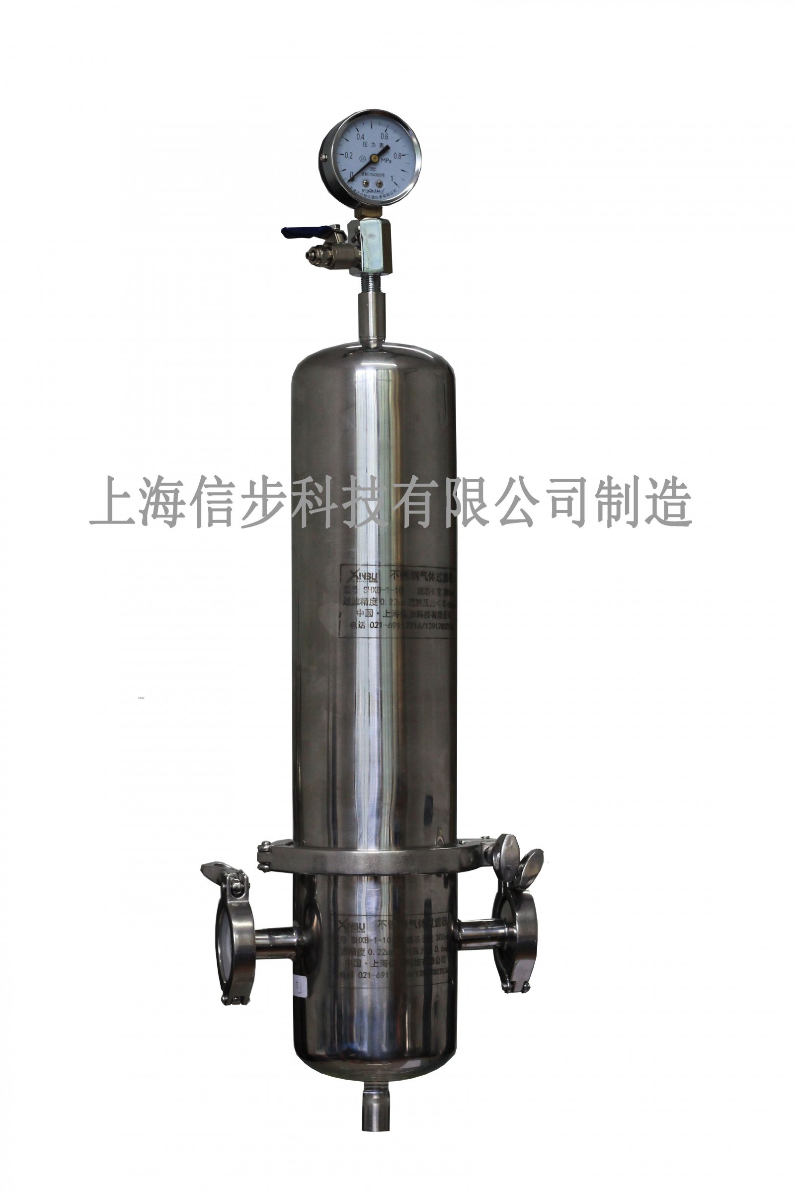 洁净(无菌)气体过滤器是一种过滤效果好,滤芯使用率高的气体过滤器,筒体内设有滤芯,筒体上连有进气口和出气口,进出口管道在同一中心线上,拆卸上筒体即可更换滤芯,简单安全。本机主要选用疏水性的PTFE滤芯过滤气体,气体过滤能达到无菌,大通量,耐高温,耐强酸碱,化学适用性广,主要适用于发酵罐、二氧化碳、氮气、压缩空气等气体的洁净。用于气体过滤时,能达到100%截留0.01um以上各种噬菌体、细菌及微粒。过滤器可安装标准的10英尺至40英尺滤芯,数量可多达200多支,因此完全可按客户的流量选择*合适的设备。