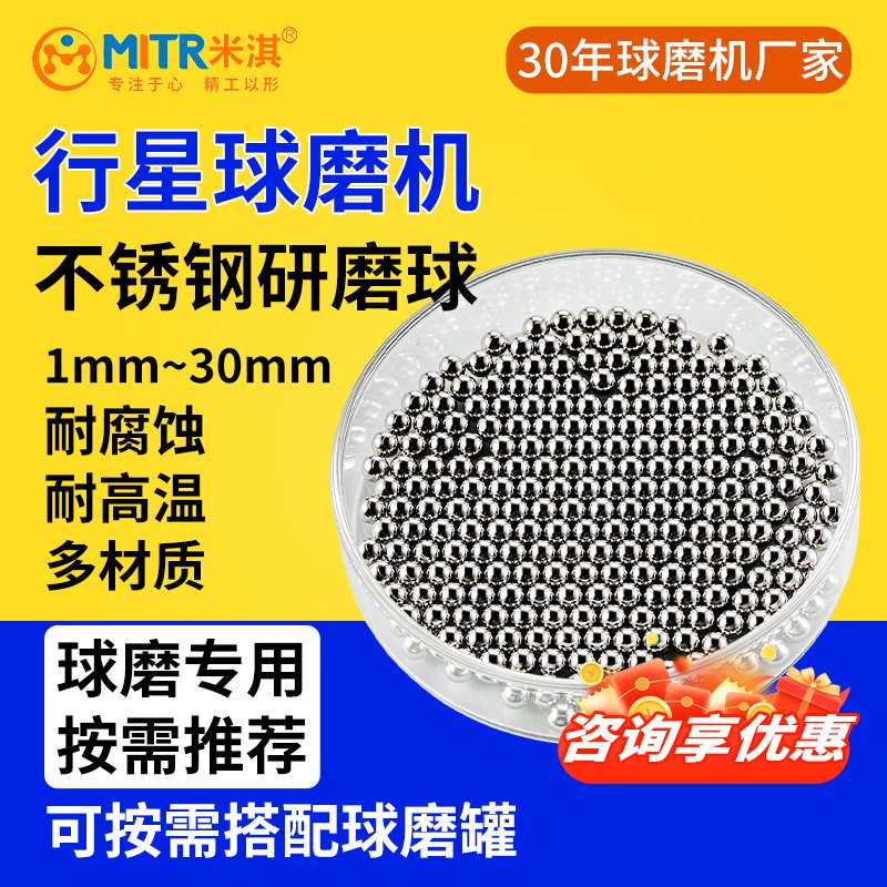 研磨介质是球磨机内滚动的球或圆柱物体。MITR米淇研磨球是指配套用于实验室球磨机仪器上,装在球磨罐里使用的研磨球,它的材质有不锈钢、玛瑙球、氧化锆球、尼龙球和聚四氟球等多种材料和规格大小的球体,根据研磨的物料对象特点,提供多种研磨球解决方案。