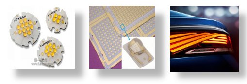 高亮度LED(HBLED):散热基座、支架,汽车LED大灯、LED 管芯等高功率、小尺寸的商用、工矿、民用等照明领域。