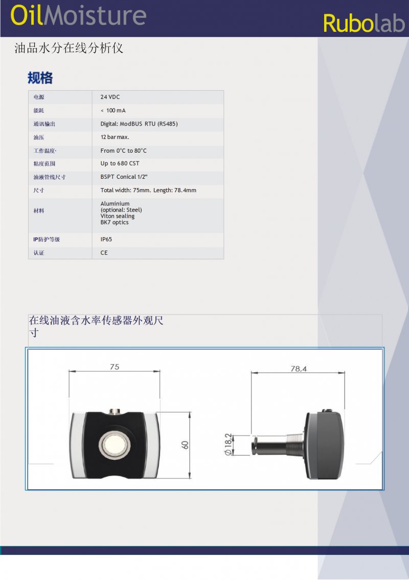OilHealthProbe传感器是一种在线监测系统,用于油液劣化状态和含水率监测,后者使用近红外技术。该传感器基于光学原理,即使在没有再循环或流量降低的系统中,也可以随时了解润滑油的降解状态。