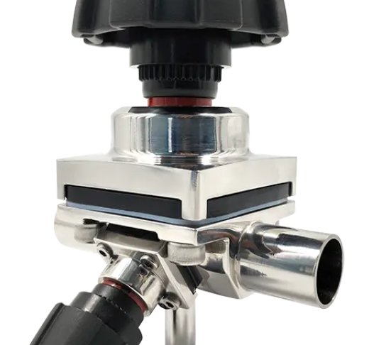 与GMP/SAP 阀的设计不同,I-Body 在两通路用点隔膜阀的阀体上增加了完全无死角的一个 DN8 或DN15 的小口径阀门,分没有焊缝等基本特征,死角端比传统的GMP/SAP 阀小很多