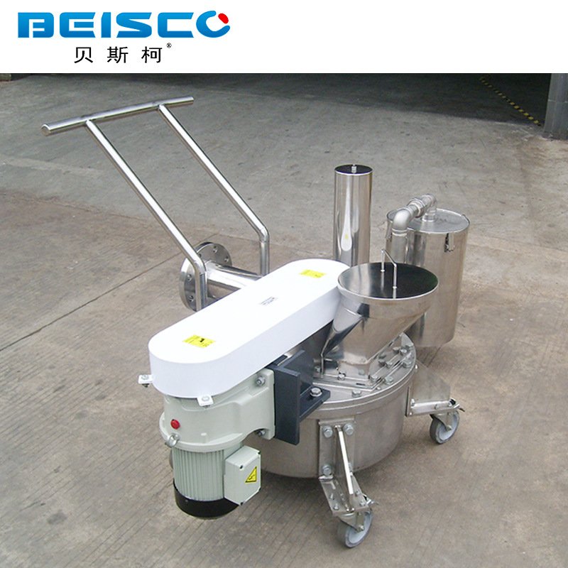 立式旋转下料阀的回转轴为垂直方向,设计为从上盖接收原料、从本体中间部分排出原料。上, 盖连接输送气管,从本体中间部分可直接输送空气。以前回转轴为水平方向的情况,需要带加速室,面间距离很长。贯穿型的情况,构造为在本体下部连接空气输送配管,面间距离很长。立 式旋转下料阀从原料入口到排出口的面间距离很短。原料入口与原料排出口皆为V形,可降低因颗粒咬料而产生的破碎。立式旋转下料阀为可移动式,标准装备带有脚轮。