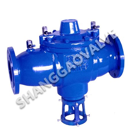 02Mpa时,介质处于倒流的临界状态,这时泄水阀膜片上部压力小于泄水阀腔和弹簧的压力,泄水阀自动开启,将倒流介质排出管外,同时大量空气进入阀腔,形成空气隔断.杜绝介质倒流,大于0