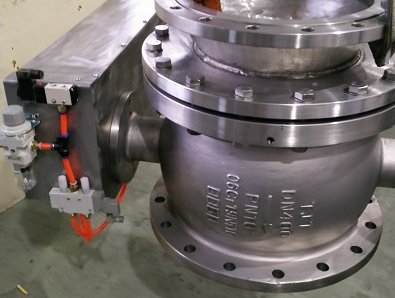 圆顶阀是一种新型的除灰专用阀门,为铸铁壳体结构,内部安装有带有两个不锈钢转轴,可旋转的铸铁圆顶,在阀门转顶中装有一个充气的圆顶密封圈。阀门工作时圆顶与可充气密封圈之间无接触,密封圈采用特殊配方橡胶制成。是气力输送系统中的关键部件。