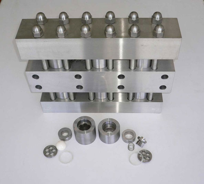 均质阀的结构可分为平型和W型两种,平型阀能承受高压冲击,具有耐磨性好,使用寿命长等优点。W型阀是一种能在一组阀件内产生多次均质过程结构的阀,在装有双级阀的机器上只要物料通过均质阀内一次,物料就被均质阀四次以上,有的可达6-8次,从而,在同样压力的情况下,大大提高了其均质效果,因此使我厂高压均质效果这项指标达到国际同类产品的**。