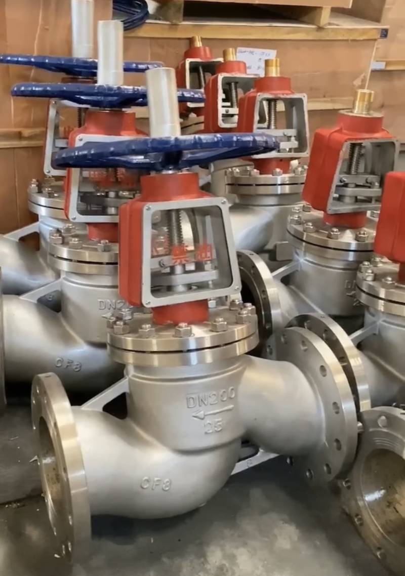 4、与普通截止阀相比,氧气管路用截止阀的支架部分采用全封闭式结构,且压紧填料时可以打开支架上的防护盖板,起到了防油防尘的作用。并有明显的禁油标记。