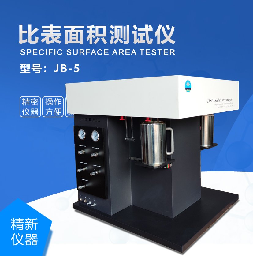 JB-5型比表面积测试仪,采用氮吸附动态法测定粉体比表面积,4个工作分析站,可以依次测试4种样品的比表面积,非常适合样品产量大、品种多的行业使用。分析范围:0.0005m2/g~无上限;测试精度高、重现性好。采用双气源动态气相色谱法,以氦气作为载气,氮气为被吸附气体作为测试气体,对不同样品的固体表面进行分析,能快速测试各行业粉体、颗粒等材料的比表面积。