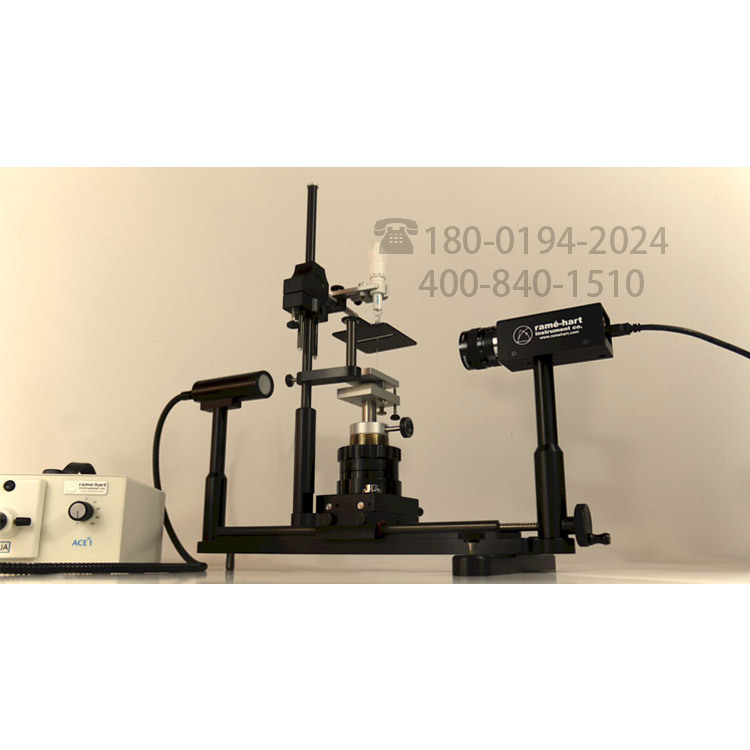 美国RAMé-HART MODEL 500 接触角仪,张力计,张力仪,湿润性,清洁度,润湿性能,接触角低于5°,疏水性,粘着,接触角测量方法,动态接触角,静态接触角