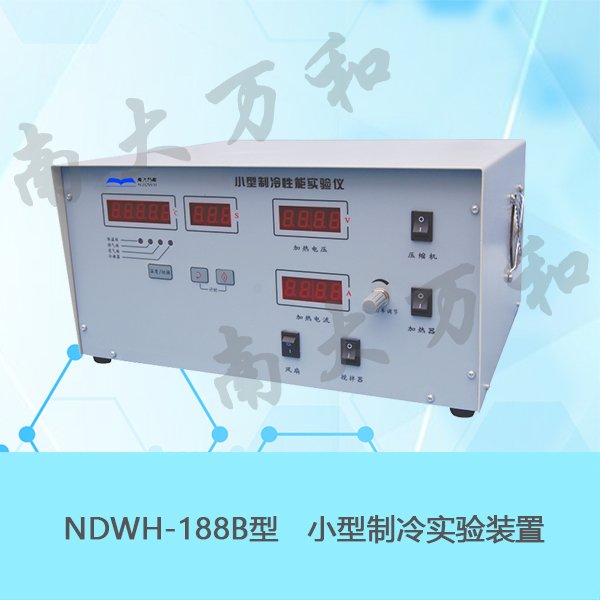本实验装置用于近代物理实验中的低温实验,测量小型制冷装置制冷功率和制冷效率。利用加热补偿法测量不同温度下小型制冷机模拟系统的制冷功率,可通过对制冷系统压缩机排气口和回气口温度及压力的测量估测制冷效率。通过以上测量学习和掌握对不同制冷剂及不同灌注量的制冷剂对制冷功率与效率的影响进行研究。本实验装置由制冷部分和控制部分组成。制冷部分由压缩机、冷凝器、过滤器、毛细管、蒸发器、压力表和不锈钢机架组成。控制及测量部分由四通道温度计(单表头显示,按键切换通道显示)、秒表、恒流源等组成。