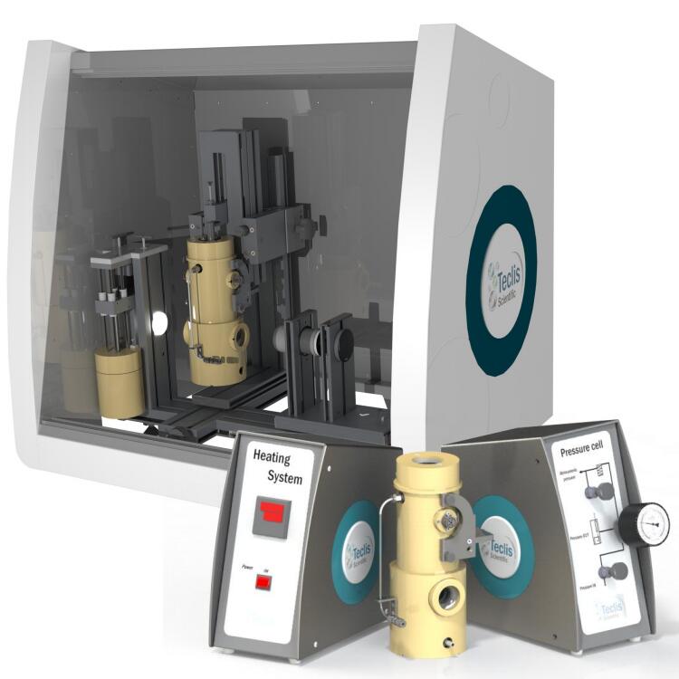 压力腔可轻松连接到TRACKER™。 注射器和样品支架 封闭在金属腔中。 TRACKER™H设计用于测量下悬或上升两种状态的气/液或液/液或固/液界面。 借助旋转平台,无需打开压力腔可进行多次躺滴测量。