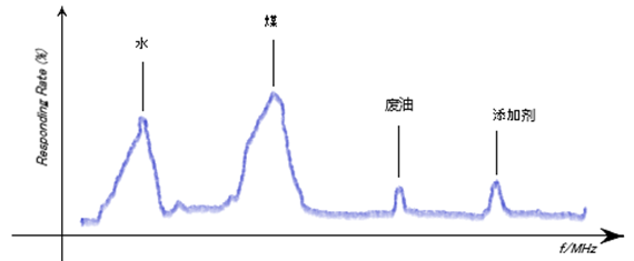 浆液中各组分物质(如水、煤、废油、添加剂等)的电磁波波谱吸收峰不同,各组分吸收峰的频率位置反映了物质类别(水、煤、废油等),其吸收峰的面积和高度则反映了相应组分的量的大小。通过检测分析透射波谱,即可确定出浆液中组分类别及各组分量的大小,进而根据各组分量的大小计算出浆液浓度。