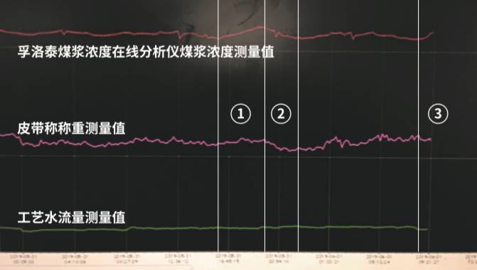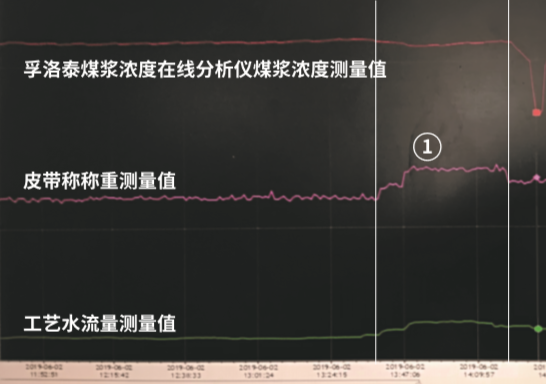 ③末尾进水量减少、进煤量基本不变时,煤浆浓度测量值增大。