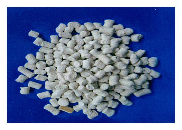 将氧化钙磨细后,与其他配料经高混机混合后,由双螺杆挤出机造粒,避免了在贮运过程中吸收水分的问题,生产出的消泡母粒有效钙含量高,吸水效果好,加工流动性好
