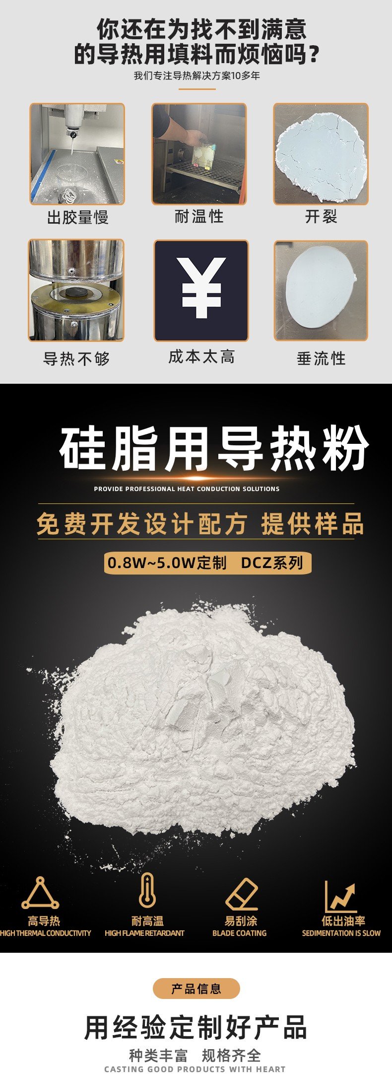 本系列产品规格:0.8W/(m·k)至5.0W/(m·k)全覆盖