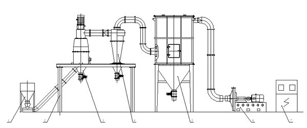 1、料仓 2、操作平台 3、分级机 4、旋风收集器