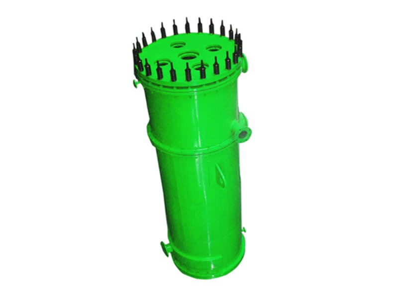 圆块孔式硫酸稀释冷却器,上部为浓硫酸与软水混合、稀释、分配部分,中、下部分为冷却部分、与圆块孔式石墨冷却器相同。本型为浓硫酸稀释工艺中较为先进的设备,可以将98%以上浓硫酸的一次稀释到65%以下,并且稀释后直接进行冷却至50℃以下。该装置可根据客户需求进行全自动控制设计或单元装置供应。