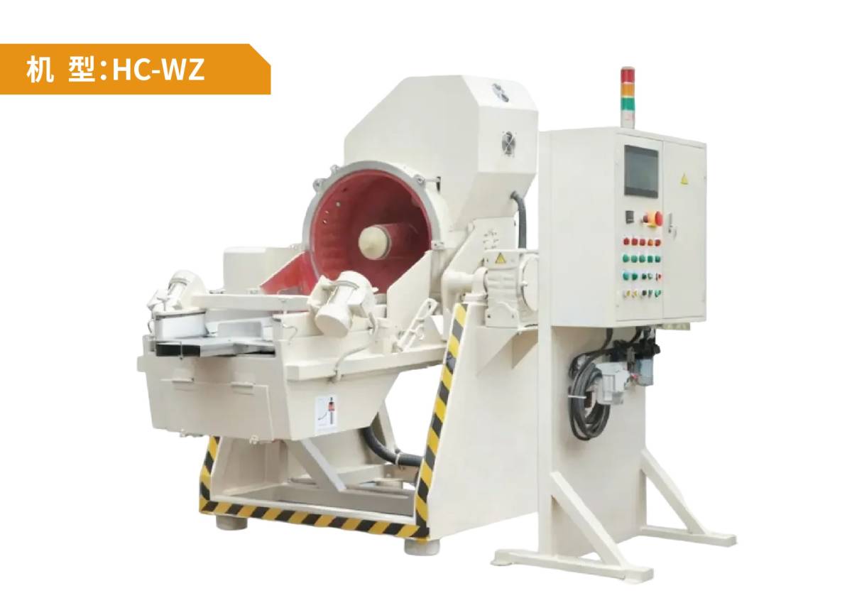 1、研磨槽:由底部回转盘与多边形固定研磨槽组成。研磨槽内衬有相当厚度的高强度、高耐磨性的聚氨酯(PU),使用耐久。研磨槽与电机连为一体,可通过操纵按钮自动向后翻转90°,将磨料和工件自动排出。