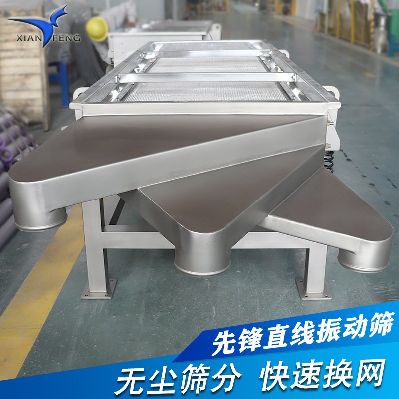 XFZ系列直线振动筛利用振动电机澈振作为振动源,使物料在筛网上被抛起,同时向前做直线运动,物料从给料机均匀地进入筛分机的进料口.通过多层筛网产生数种规格的筛上物、筛下物,分别从各自的出口排出。具有耗能低、产量高、结构简单、易维修、全封闭结构.无粉尘溢散.自动排料等特点,更适合于流水线作业。