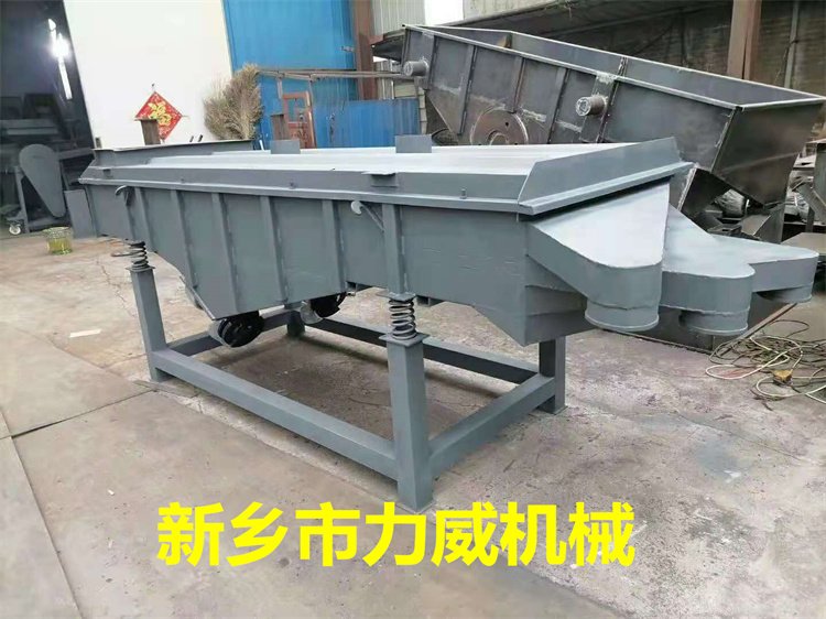 直线振动筛是我公司的成熟产品之一。采用电机作为动力源;使物料在筛网上被抛起的同时向前作直线运动,可配合单层或多层筛网以达到脱水、 除杂、检查等目的;具有分级和输送的功能。该产品筛分筛透率好、处理量大、结构简单、 耗能少、噪音低、筛网使用寿命长、密封性好、很少粉尘溢散、维修方便、可用于流水线 生产中的自动化作业。适用于粒度在0.074-5mm、含水量小于70%、无粘性的各种干式粉状 物料筛分。给料粒度不大于10mm。