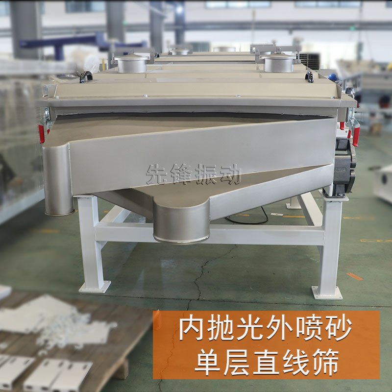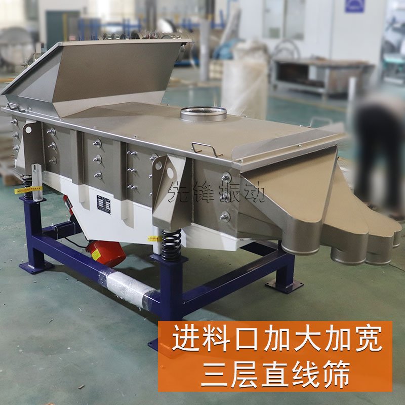 直线筛(直线振动筛)利用振动电机激振作为振动源,使物料在筛网上被抛起,同时向前作直线运动,物料从给料机均匀地进入筛分机的进料口,通过多层筛网产生数种规格的筛上物、筛下物、分别从各自的出口排出。具有耗能低、产量高、结构简单、易维修、全封闭结构,无粉尘溢散,自动排料,更适合于流水线作业。
