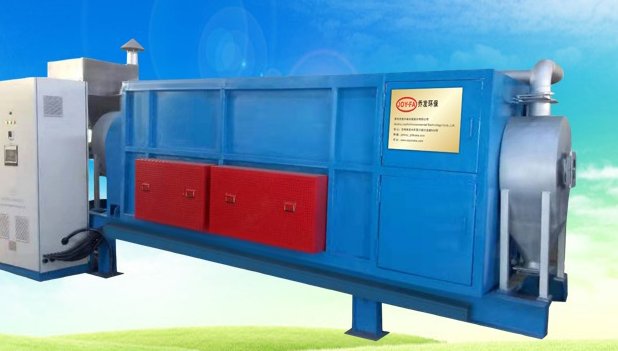 苏州乔发环保研发设计药渣、污泥绝氧热解气化装置,采用了热解室和燃烧室分离设计,垃圾热解炉是垃圾炭化的核心设备,热解炭化炉从整体来看是一个卧式筒体结构,采用间接供热的方式,热源为侧部热风炉燃烧产生高温,热解炭化炉内的物料在低氧的状态下受热分解不充分燃烧,排出含大量的一氧化碳、甲烷、氢气的干馏气体,由引风机引出后通过烟气分离装置分离出木焦油、木醋酸后得到较高纯度的可燃气体,进入自配的燃烧器充分燃烧给主机加热,从而实现大部分烟气的自我回收利用。