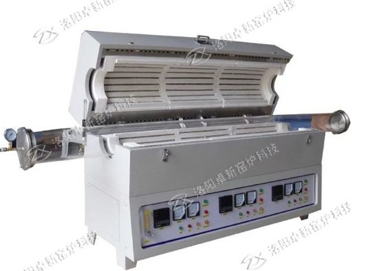炉管两端不锈钢法兰密封,可在真空下工作,法兰上有进气口和出气口,可通入保护气体,不锈钢法兰快开设计,方便进出物料。