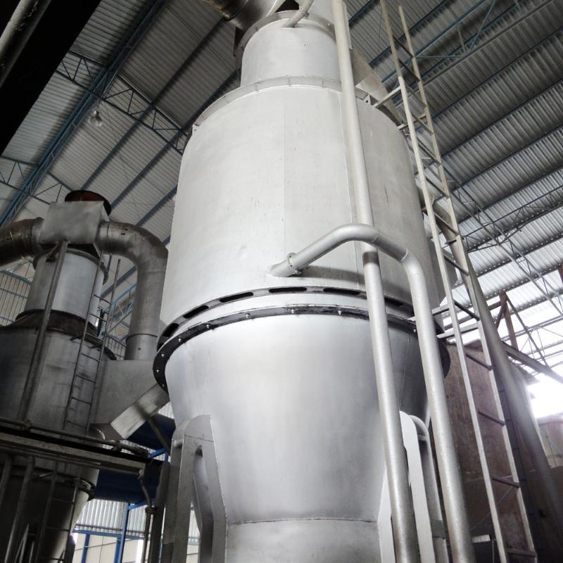 燃料经输送设备送入炉膛,借助特殊设计的圆形炉膛及合理送风方式,在炉内进行悬浮旋风燃烧。燃烧产生的热风及挥发物经旋风作用向上进入二次燃烧室充分燃烧。干净的热空气进入换热器或直接用于干燥。燃烧产生的炉灰因旋风作用与炉膛摩擦减速,自动沉降到炉体下部集灰斗中,冷却后通过拨灰器以及输灰绞龙送出。