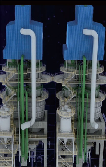 采用了先进的并流蓄热煅烧原理,助燃空气、 燃料、物料三者均从煅烧带的上部向下流动,三者流向相同,物料实现梯度燃烧,从而避免过烧现 象。同时,在冷却带物料与冷却风逆向汇合,使物料快速冷却,从而提高石灰的活性度。