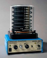 Insures that each delivered breath will have essentially the same volume, independent of changes in patient compliance and airway resistance. The deliverable tidal volume (TV) range is from approximately 20ml to 3,000ml using 3 interchangeable bellows and bellows housings as seen here. Most small animal facilities require only the small bellows attachment , seen at the left, with the standard size ventilator, center.