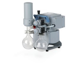 该化学真空系统用一个泵可同时操作两个不同的应用。主要用于连接旋转蒸发仪、真空浓缩仪和真空干燥箱。每个真空接口配一个手动流量控制阀来调节有效抽速。进气口的分离瓶(AK)为玻璃材质,外部覆保护膜,用来防止颗粒或小液滴进入泵体。出气口的废气冷凝器(EK)效率高,结构紧凑,可实现近100%的溶剂回收效果,有效地循环利用溶剂同时保护环境。