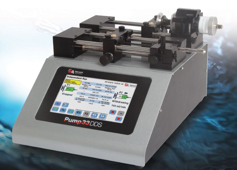 哈佛仪器Pump 33 DDS (双驱动系统)是一款具有突破性的注射泵产品。Pum p 33 DDS 具有两个可独立控制的注射通道,同时所有参数的设置与显示由一个触摸屏来完成。
