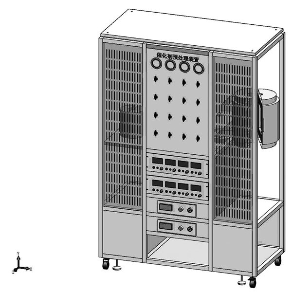 本装置是催化剂预处理装置,拥有四个气路,两套独立的气路控制单元,加热炉安装在装置的左右两侧,选用精密的控制仪表,使得装置具有控温精度高、可靠性高、操作简便、结构紧凑的特点。该装置可用于催化剂预处理,包括还原、氧化、碳化、硫化、氮化等,也可用于复合材料的后处理。