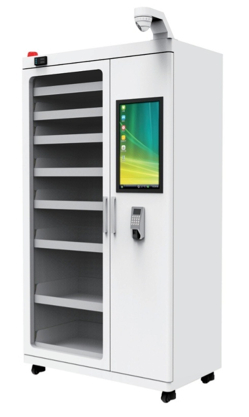 主要用于实验室的小型测量仪器、检测仪器、小型设备、工具等器具的管理,通过无源RFDI标签对工器具进行统一 标识,工器具领用归还时,通过密码、刷卡、指纹、面部识别方式进行权限的管理开门,记录责任人,关门后,柜体实 现自动盘点,记录领用工具的数量及种类;集成21.5寸电容触摸屏,外形简洁美观,质量稳定,性能可靠,支持多标签 读取,采用网口或者4G进行数据传输,是一款高性能,操作方便的工器具专用RFID智能管理柜。
