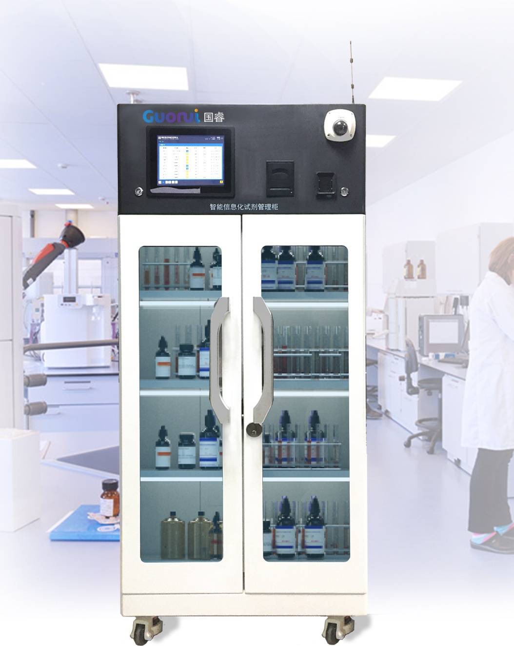 智能信息化试剂管理柜是一款以智能硬件为基础,匹配信息化试剂安全管理系统而成的,具有自主知识产权的高科技产品,集成了自动控制系统、身份识别系统、条码打印、条码扫描、内循环过滤系统等装置,可将操作人员、试剂信息、柜体信息系统的管理起来,形成完整的试剂信息管理系统,可实现对试剂的安全管理。