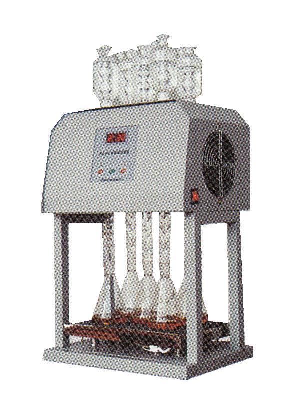 COD消解器KY-100采用微电子技术进行定时控制加热电炉,可对5(或10)个锥形瓶回流装置同时进行加热,同时采用玻璃毛刺回流管代替球回流管,并以风冷技术取代自来水冷却方式,既可节水又能使仪器规范化,它们能在设定的时间内保持反应所必需的高温,以保证彻底消解。