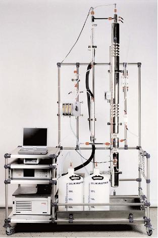 配置完整,包括:塔柱,各种填料,进料储罐(气体和液体),气液预热装置,采样装置,流量测量控制系统,pH、电导在线测量,塔顶、塔中和塔底温度全面监测和控制,柱压差测量,PC数据采集,物料接收器、产品在线分析设备(如连接气相色谱分析仪)等;
