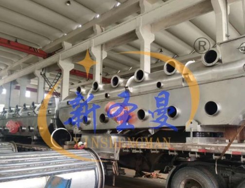 物料自进料进口进入机内,在振动力作用下,物料沿水平面流化床抛掷,向前连续运动,热风向上穿过流化床同湿物料换热后,湿空气经旋风分离器除尘后由排风1:3排出.干燥物料由排料进口排出。